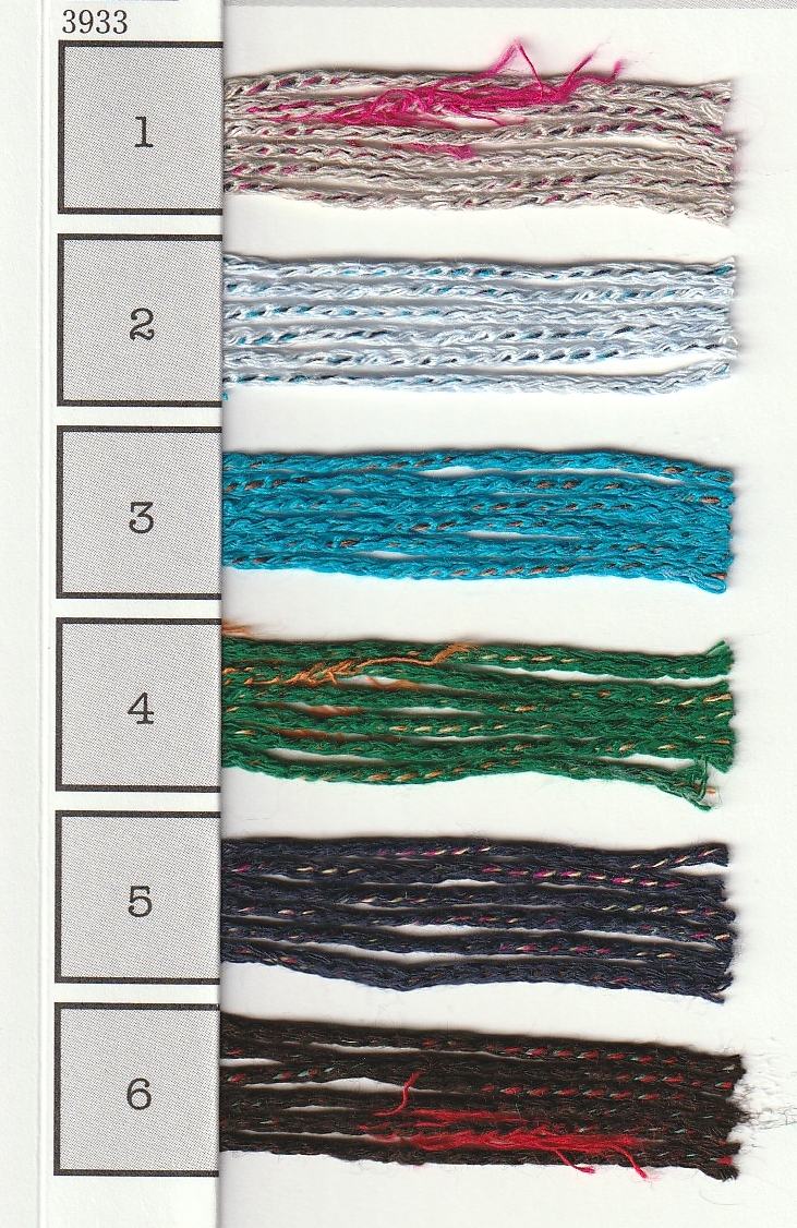 包んだ3色のレーヨン氏で構成したファンシーヤーンです。